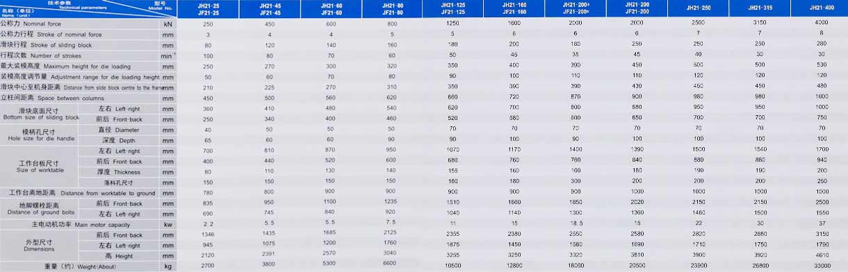 JH21采用液压过载保护装置,JF21采用钢性保险器保护装置,防止使用超载对机床造成损坏;
